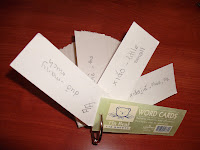 Aha…. Word Cards ni solved masalah pelupa saya. Idea ni saya gunakan untuk buat Fabric Tag. Saya lekatkan kain kat sekeping kad ukuran 1½ X 2 inci, di belakangnya saya tuliskan berapa meter, harga kain dan kat mana beli dll. Kalau pergi shopping Fabric Tag ni very handy untuk orang yang pelupa macam saya. Selain dpd itu info yang ada kat fabric tag ni really useful apabila kita nak buat sesuatu projek, tak payah lah kita nak bongkar semua kain-kain kita sebab semua info dah ada kat hujung jari. Horray!!!! Selamat Mencuba.